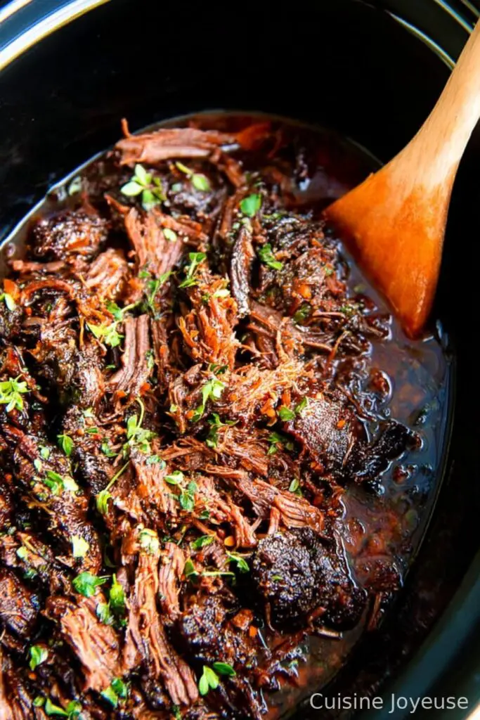 5Cook on low for 8 hours or on high for 3-4 hours, until the beef is fork-tender and easy to shred.
