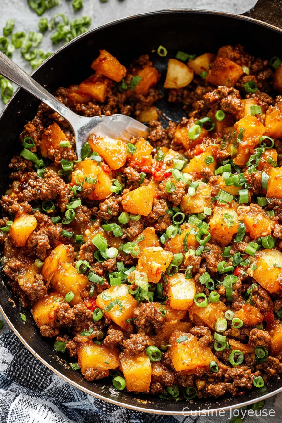 So there was this one Tuesday—not even a spectacular Tuesday, just an aggressively normal one—when I stared into the abyss (my almost-empty fridge) wondering how dinner was going to magically materialize. Ground beef, a couple of potatoes and… hmm, a random half-onion hanging around. And thus, the Quick Ground Beef Potatoes were born (well, re-born; I’m pretty sure my aunt made something similar, but hers involved, like, seven hours and three different stock pots… hers was good but let’s be honest, ain’t nobody got time for that after work). Anyway, ever since then, this has been my “I-refuse-to-order-takeout” meal. Plus, the clean-up is not insane, which feeds my secret desire to not spend all evening elbow-deep in suds.